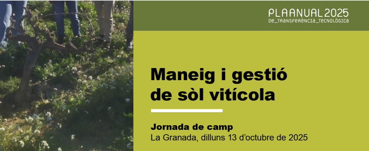 "Maneig i gestió de sòl vitícola", dilluns 13 d’octubre a la Granada Consulteu el programa aquí. En cas que vulgueu assistir-hi, us podeu inscriure a través del portal RuralCat.