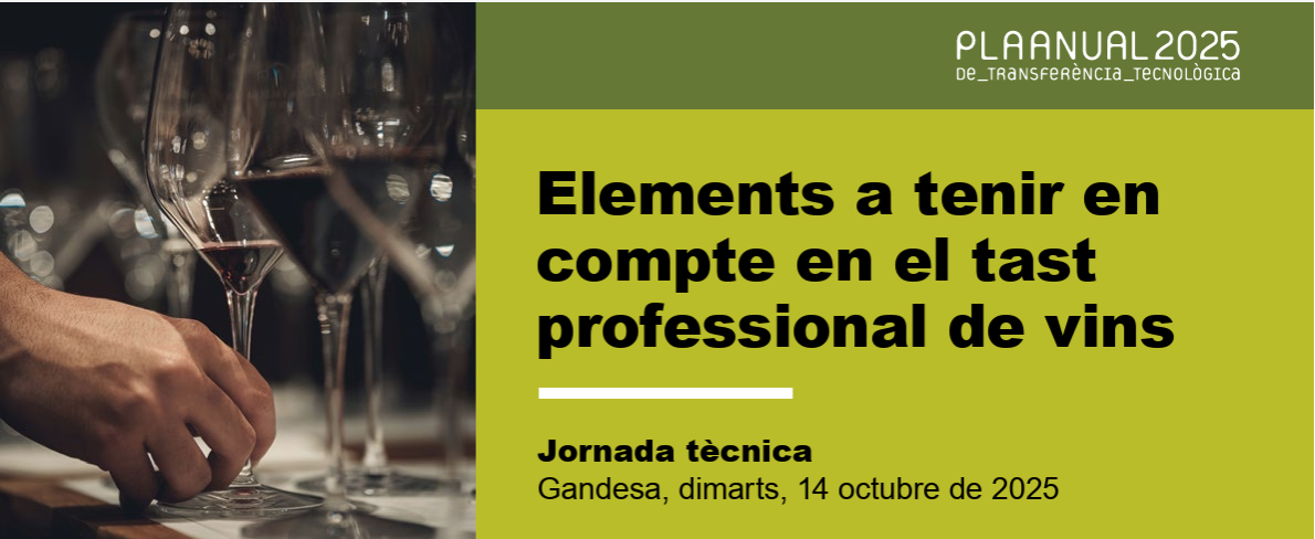 "Elements a tenir en compte en el tast professional de vins", dimarts 14 d’octubre a Gandesa Consulteu el programa aquí. En cas que vulgueu assistir-hi, us podeu inscriure a través del portal RuralCat.